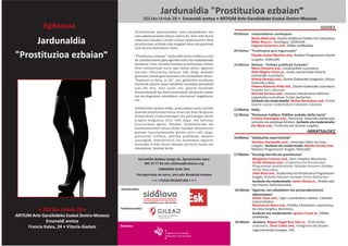 Este documento describe un evento titulado "La prostitución a debate" que tendrá lugar el 28 de Octubre de 2011 en el ARTIUM Centro-Museo Vasco de Arte Contemporáneo. El objetivo del evento es generar debate sobre la situación de las mujeres que se dedican a la prostitución en Álava y visibilizar este tema. La agenda incluye presentaciones y mesas redondas sobre temas como la trata de personas, políticas públicas, normativas laborales y derechos de las trabajadoras sexuales. El evento es grat