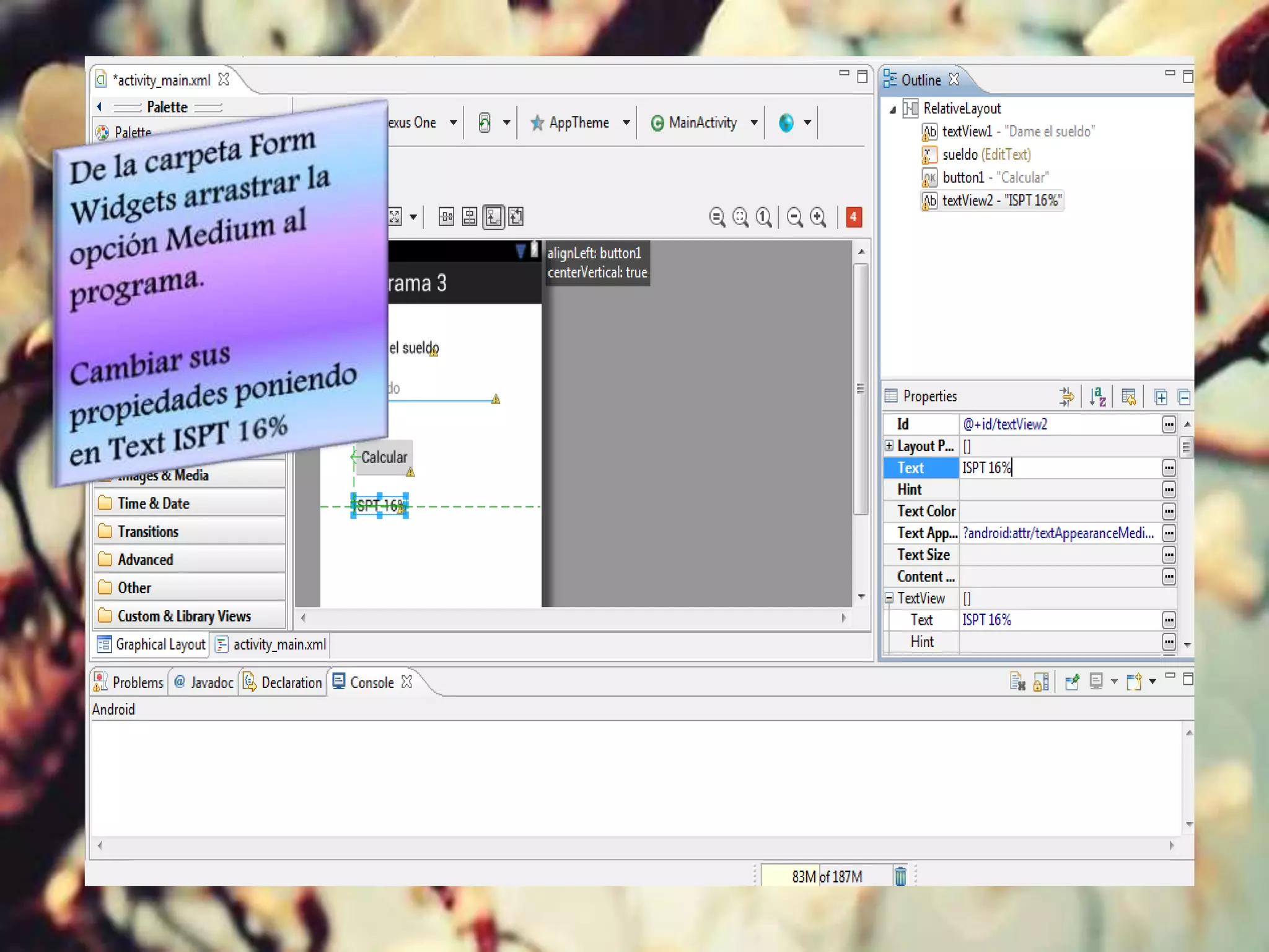 Este documento presenta las instrucciones para crear una aplicación móvil en Android Studio para calcular el impuesto sobre la renta (ISR) del 16% sobre un sueldo. Detalla los pasos para agregar campos de texto, botones y etiquetas y configurar sus propiedades. También explica cómo ejecutar la aplicación en un dispositivo Android para probar el cálculo del ISR.