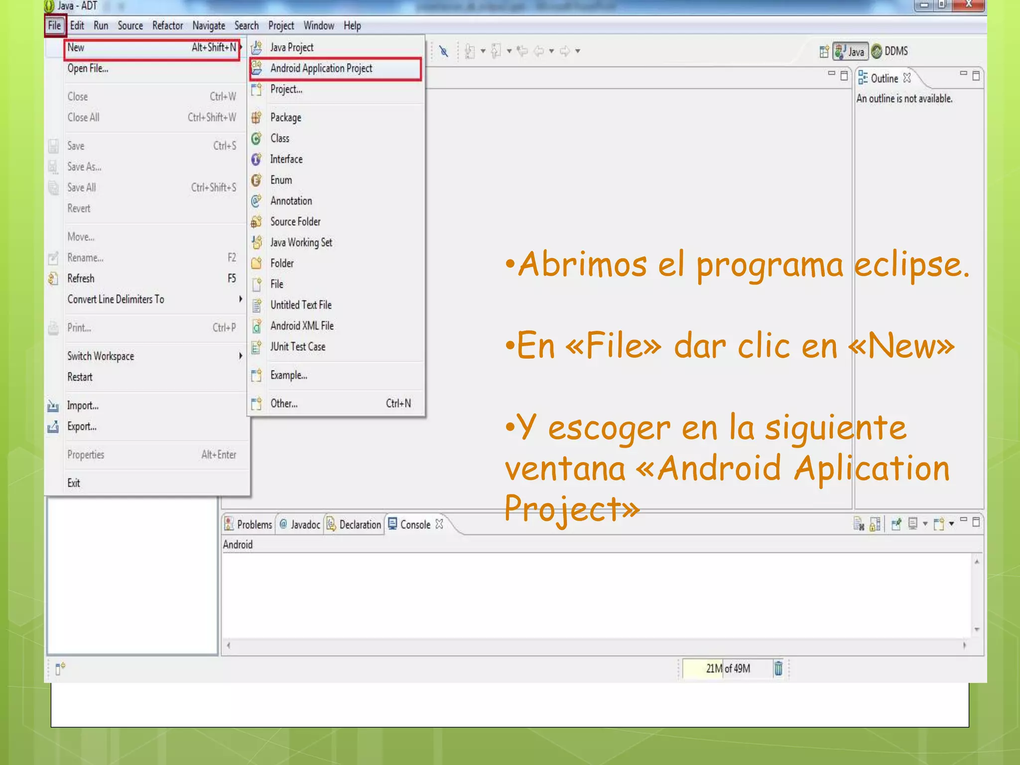 Este documento describe los pasos para crear una aplicación en Android Studio que suma o resta dos números. Incluye instrucciones como agregar cajas de texto, botones de radio y cajas de texto para mostrar el resultado. El documento también menciona abrir el proyecto en Eclipse y agregar código para realizar las operaciones matemáticas básicas.