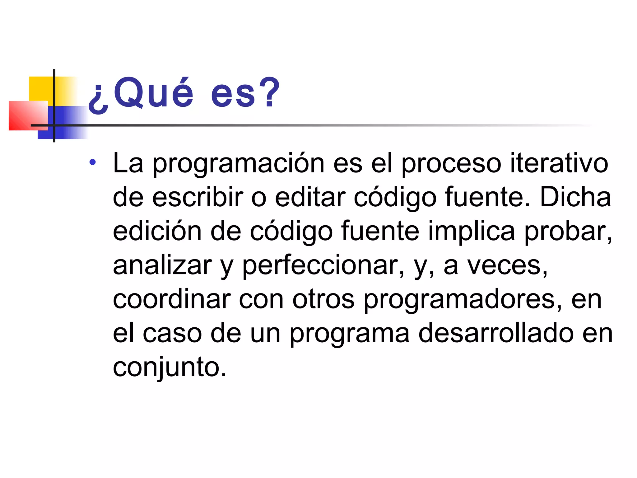 El documento describe los conceptos fundamentales de la programación, incluyendo que es la programación, los programas informáticos, los lenguajes de programación y la historia y evolución de los lenguajes de programación. Explica que la programación es el proceso de escribir o editar código fuente para crear programas informáticos que son conjuntos de instrucciones que realizan tareas cuando se ejecutan en una computadora. También describe los diferentes tipos de lenguajes de programación como lenguajes de máquina, de bajo y alto nivel.
