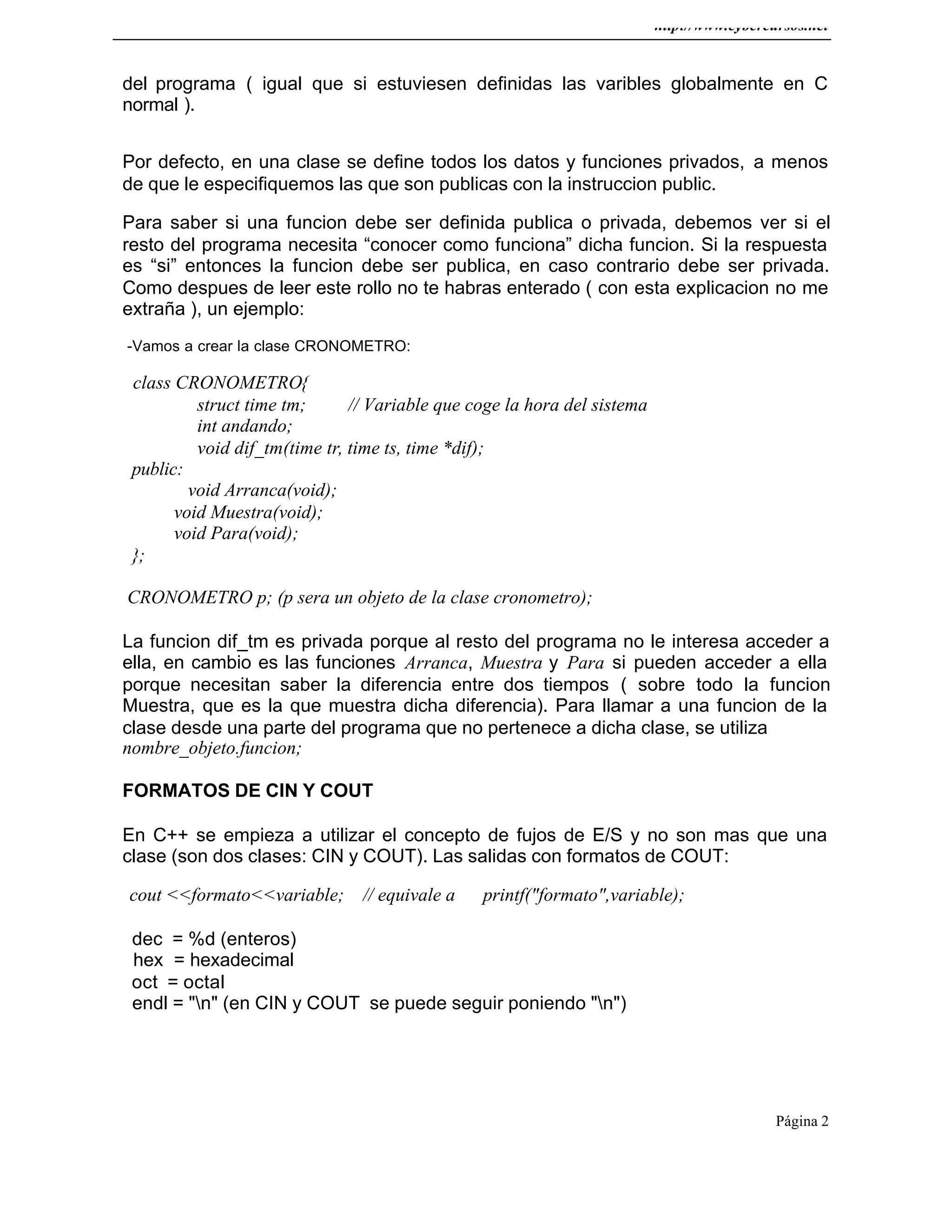 Este documento explica los conceptos básicos de la programación orientada a objetos en C++. Define clases, objetos, constructores, destructores y funciones miembro. También cubre sobrecarga de operadores, funciones amigas y constructores de copia. El documento proporciona ejemplos para ilustrar cómo se implementan estos conceptos en C++.