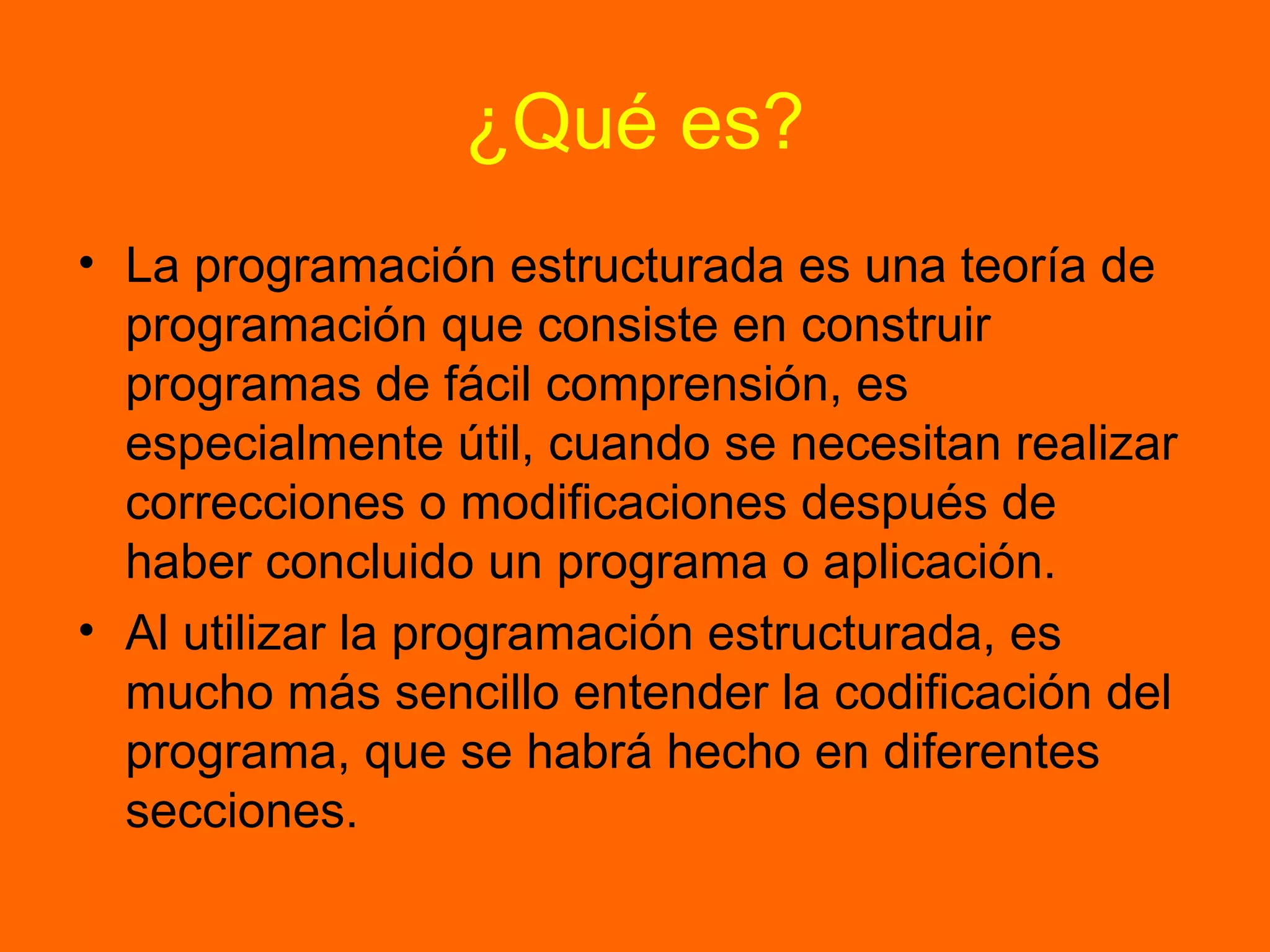 La programación estructurada es una teoría de programación que divide los programas en módulos más simples utilizando solo tres estructuras básicas: secuencia, selección e iteración. Esto hace que los programas sean más fáciles de entender, probar y modificar. La programación estructurada representa el flujo de un programa a través de diagramas de flujo y garantiza que cualquier programa puede construirse utilizando solo estas tres estructuras básicas.