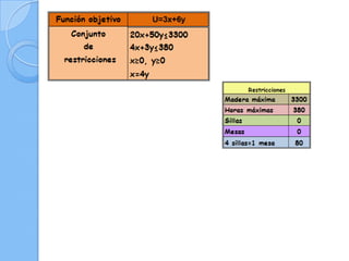 7/Optimizaci%C3%B3n-Lineal](https://image.slidesharecdn.com/optimizacin-lineal-2-120918122222-phpapp01/85/Programacion-lineal-14-320.jpg)
