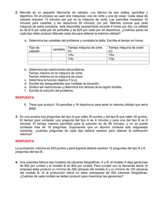2. Marcelo esun pequeño fabricante de calzado. Los fabrica de dos estilos: pantuflas y