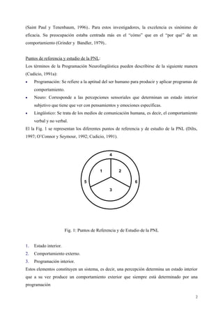La programación neurolingüística (PNL) es un modelo de comunicación que integra técnicas para mejorar la observación y escucha, promoviendo interacciones más efectivas. Creada en los años 70 por Richard Bandler y John Grinder, la PNL estudia la relación entre percepción, comportamiento y programación interna, facilitando una mejor comprensión de uno mismo y de los demás. Su aplicación es amplia, destacándose en contextos educativos y organizacionales.