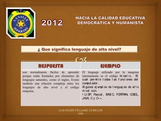 Programación significa establecer una serie de instrucciones para que el ordenador o computadora ejecute una tarea. Consiste en proporcionar un conjunto de reglas para resolver una cierta clase de problemas de manera sistemática. Los lenguajes de programación de alto nivel son fáciles de aprender y están formados por elementos de lenguajes naturales.