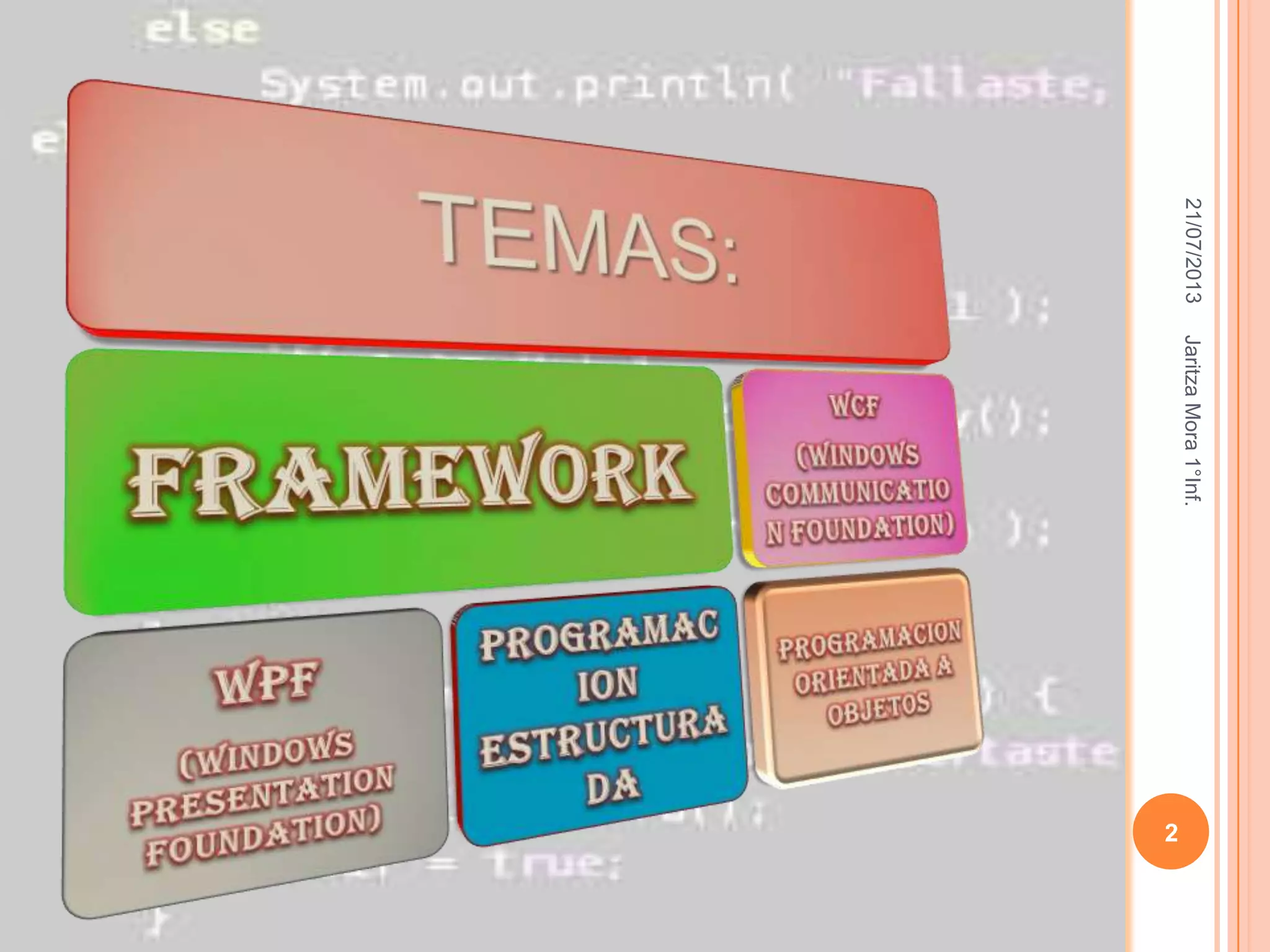 El documento describe los conceptos fundamentales de un framework o infraestructura digital para el desarrollo de software. Explica que un framework provee una estructura conceptual y tecnológica con herramientas como bibliotecas y lenguajes que permiten modelar las relaciones entre entidades de un dominio. También facilita el desarrollo de software al permitir a los diseñadores y programadores enfocarse más en los requerimientos que en aspectos técnicos. El documento usa el modelo MVC como ejemplo para describir los componentes básicos de modelo, vista y control