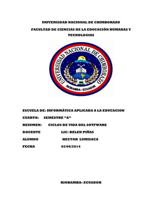 El documento describe varios modelos de ciclo de vida de software, incluyendo el modelo en cascada, incremental, de prototipo, en espiral y orientado a objetos. Explica los procesos y fases involucrados en cada modelo, así como sus ventajas y desventajas. También cubre conceptos como la reutilización de software y la síntesis automática.