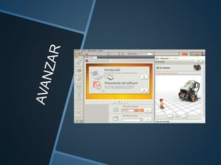 Este documento describe los pasos para programar un LEGO para que produzca un sonido y se mueva. Primero se coloca el LEGO en la pantalla y se cambia su posición. Luego se selecciona la herramienta de movimiento, se configura y se reproduce para lograr que el LEGO avance.