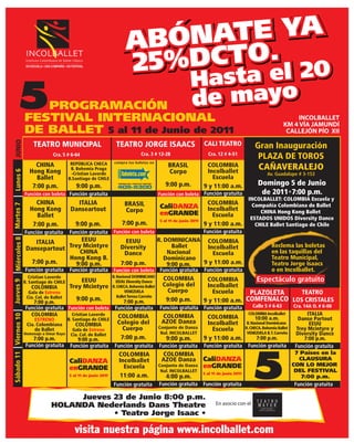 funciones gratuitas y pagadas en distintos lugares de la ciudad de cali en el marco del 5 festival internacional de ballet.