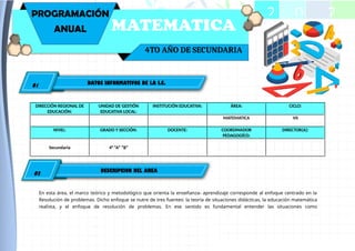 Grado de Educación Secundaria, en el Área de Matemática, se ha planteado como finalidad la construcción de la identidad