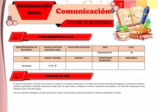 El presente programa anual toma en cuenta las características cognitivas propias de los adolescentes del grado, aborda temáticas y actividades en torno a los problemas de