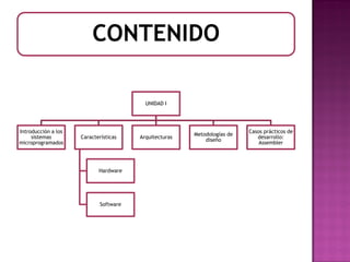 El documento presenta el plan de estudios de un curso de Programación Avanzada que consta de 3 unidades. La primera unidad cubre sistemas microprogramados, metodologías de diseño y casos prácticos en Assembler. La segunda unidad se enfoca en la plataforma Javelin para desarrollo de hardware y software. La tercera unidad trata sobre aplicaciones inalámbricas usando la plataforma NetBeans. El documento también describe la evaluación del curso y el calendario de actividades.