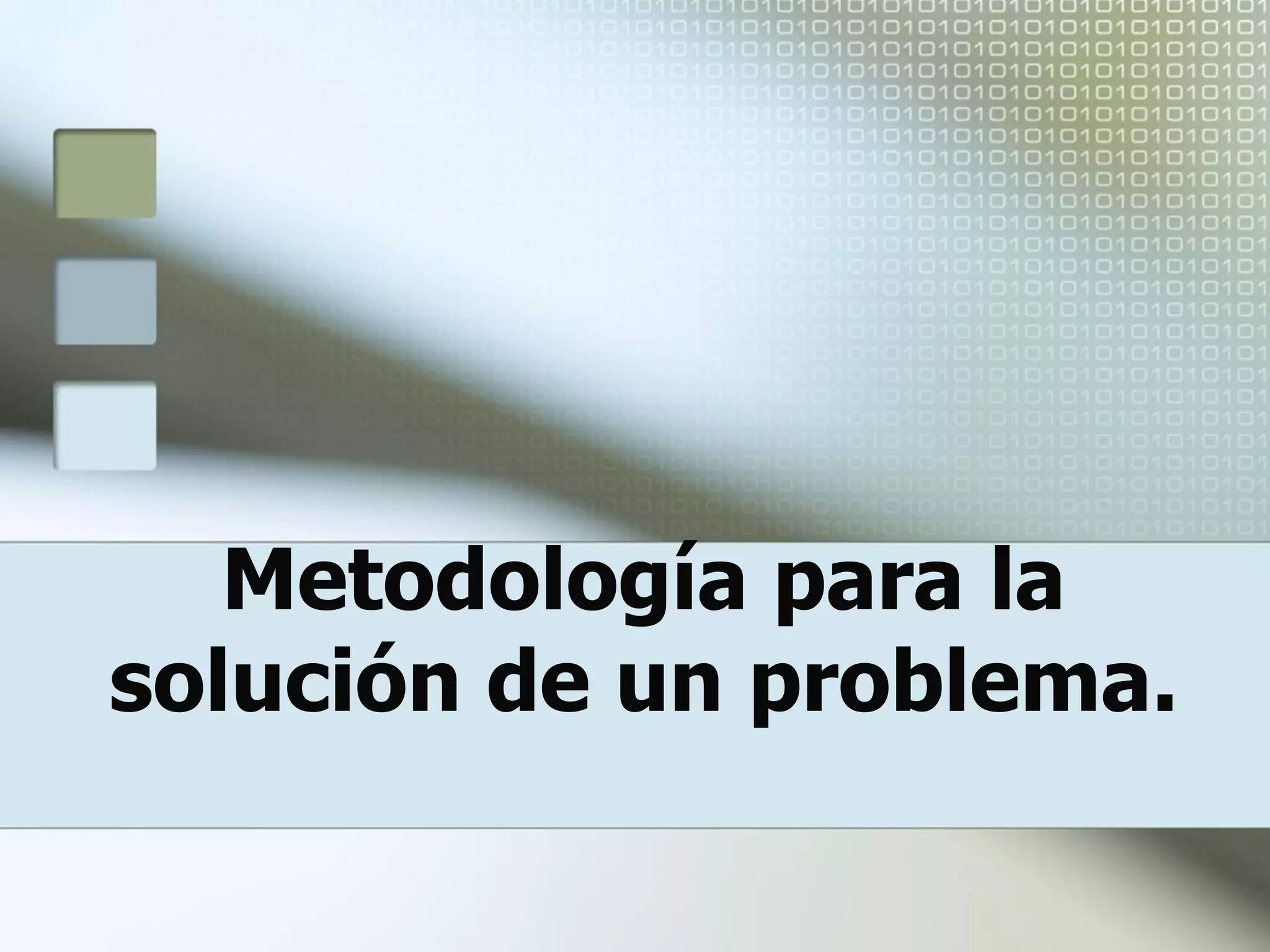 Este documento describe los pasos para resolver un problema mediante la metodología de programación: 1) definir el problema, 2) analizarlo, 3) diseñar el algoritmo. Explica que la definición debe ser clara y precisa, el análisis identifica los datos de entrada/salida y métodos, y el diseño del algoritmo requiere un punto inicial, ser definido, general y finito. También cubre conceptos como tipos de datos, variables, y operadores aritméticos, relacionales y lógicos.