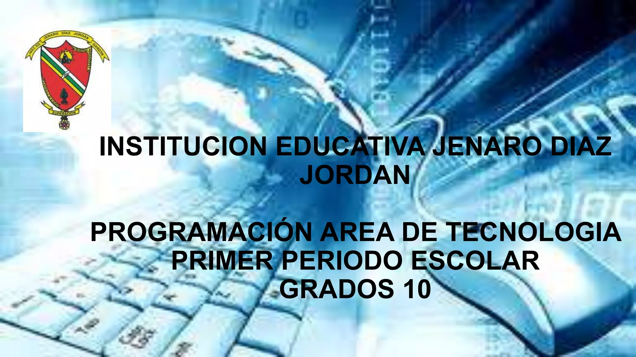 La programación del área de tecnología para el primer período escolar en el colegio Jenaro Díaz en Jordan para los grados 10 incluye las siguientes asignaturas: introducción a la programación, diseño gráfico y modelado 3D.