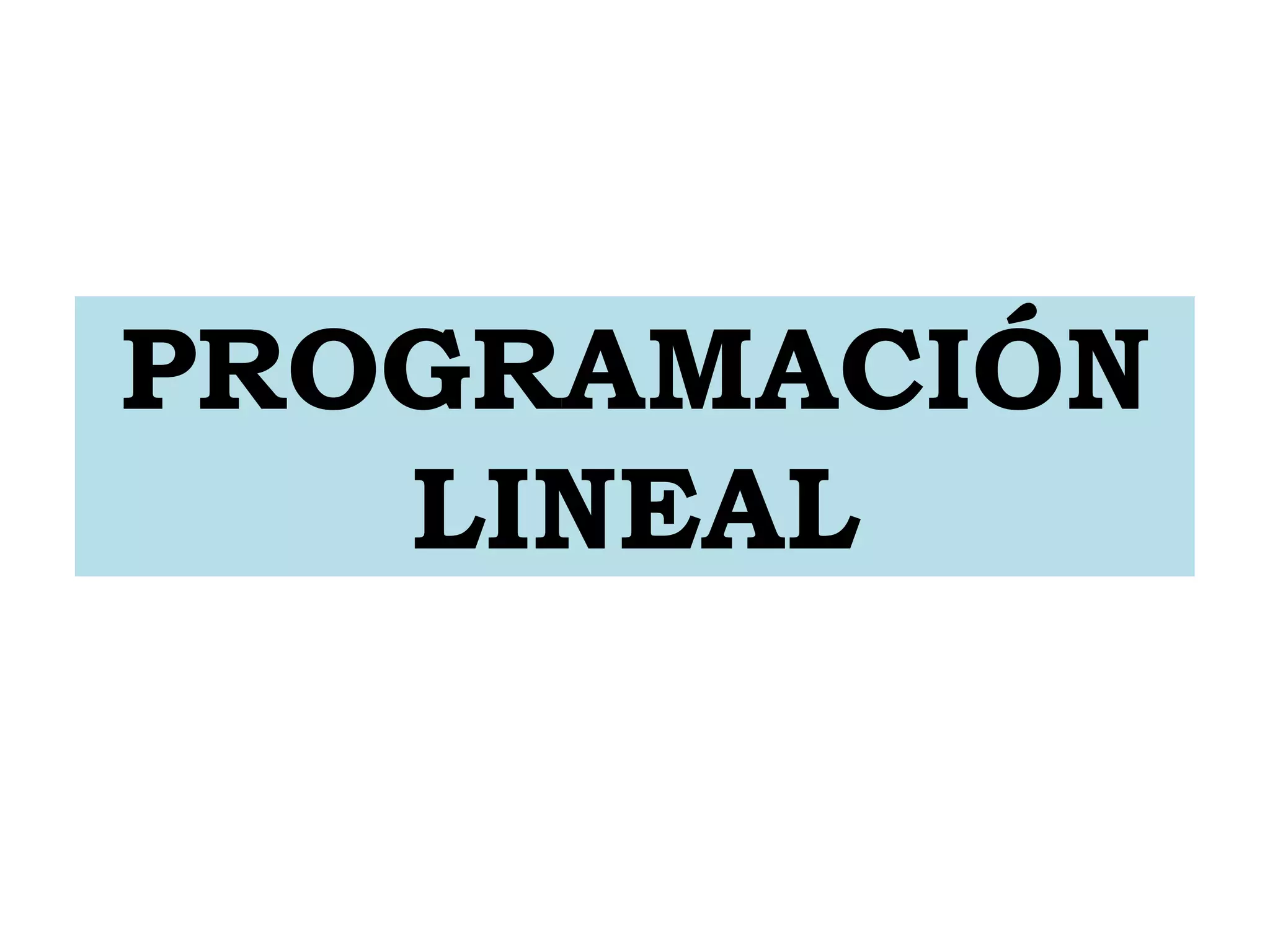 La programación lineal trata de maximizar o minimizar funciones objetivo lineales sujetas a restricciones lineales. Involucra elegir variables, definir la función objetivo y restricciones, encontrar la región de soluciones factibles, y calcular la solución óptima en uno de sus vértices para optimizar el valor de la función.