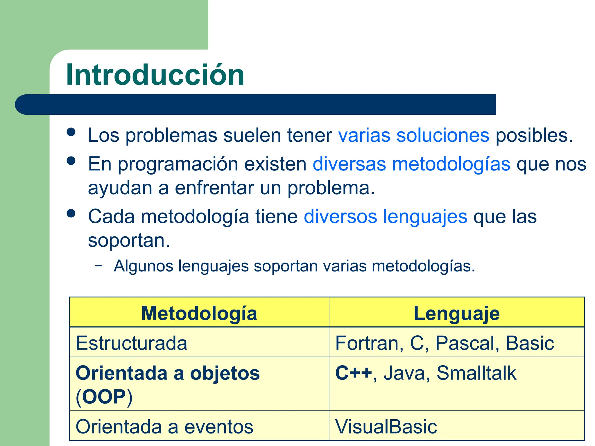 – Algunos lenguajes soportan varias metodologías.