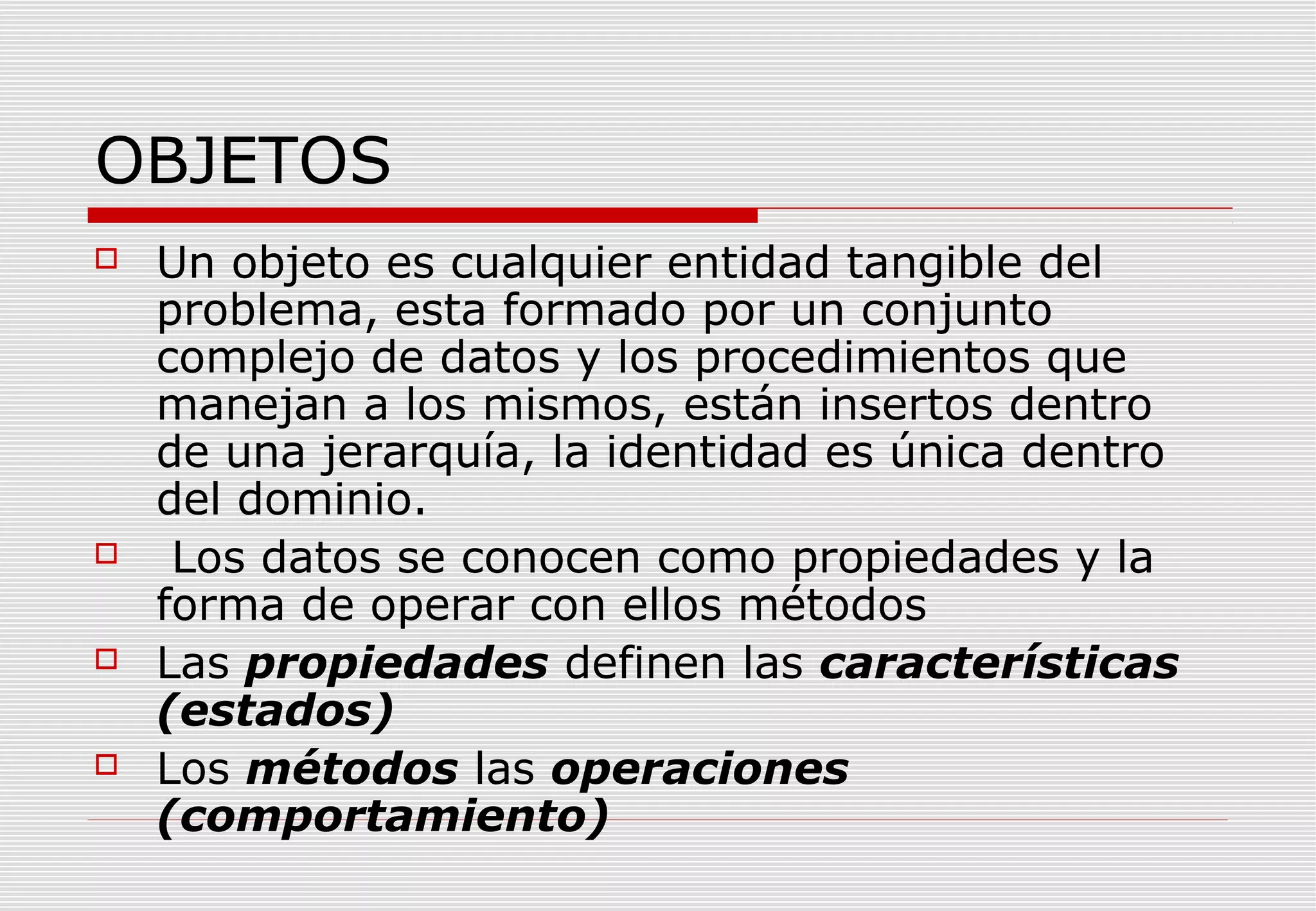 El documento trata sobre programación orientada a objetos. Explica que aunque no es difícil aprender un lenguaje de programación orientado a objetos, se necesita tiempo para aprovechar las ventajas que ofrece este paradigma. En la programación orientada a objetos, la unidad básica es el objeto, los cuales forman una jerarquía y se comunican mediante mensajes.