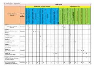 Este documento presenta el programa anual de religión para el 2016 de una institución educativa. Consta de 8 unidades que abarcan temas como las religiones orientales, la vida de Jesús, María y la Sagrada Familia, entre otros. Cada unidad dura entre 4 y 6 sesiones y aborda competencias de comprensión doctrinal cristiana y discernimiento de fe a través de lecturas bíblicas, canciones, dinámicas y productos como mapas conceptuales. El programa busca desarrollar valores en los estudiantes y articular el área de relig