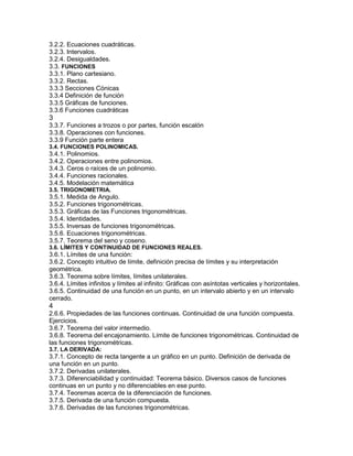 Este documento presenta la asignatura Matemáticas I de la Facultad de Ciencias Básicas de la Universidad Tecnológica de Pereira. La asignatura tiene una carga de 5 créditos y 7 horas semanales. Los objetivos son fundamentar a los estudiantes en conceptos matemáticos básicos y en técnicas de cálculo diferencial. El contenido incluye geometría, ecuaciones, funciones, trigonometría, límites, derivadas y sus aplicaciones. La evaluación consta de 4 parciales, un