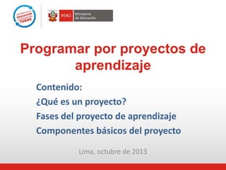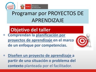 Este documento presenta la planificación de un taller sobre proyectos de aprendizaje. El taller cubrirá las siguientes áreas: concepto y fases de un proyecto, análisis de ejemplos, y diseño de un proyecto basado en una situación del contexto. Los participantes aprenderán a diseñar proyectos que integren diferentes áreas de aprendizaje y promuevan el desarrollo de competencias en los estudiantes.