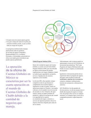 La oficina de Cuentas Globales de Chubb en México es la cuarta operación más grande del mundo, manejando una gran cantidad de negocios internacionales en los cinco continentes. Ofrece programas de seguros multinacionales "Outbound", donde la póliza se emite en el extranjero para empresas transnacionales. Dentro de Cuentas Globales, la división Global Program Solutions se enfoca en grandes organizaciones con riesgos complejos a nivel mundial.