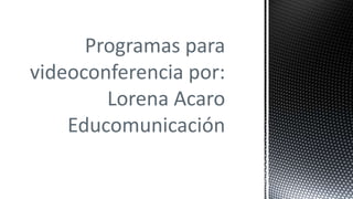 Este documento describe varios programas para realizar videoconferencias de forma gratuita o paga, incluyendo Skype, WhatsApp, Paltalk, Tokbox y Hangouts. Estos programas permiten realizar videollamadas individuales o en grupo, chats de video, y algunos incluyen funciones adicionales como grabación de video o intercambio de archivos. Los planes pagos suelen ofrecer mejor calidad de video y más usuarios por llamada.