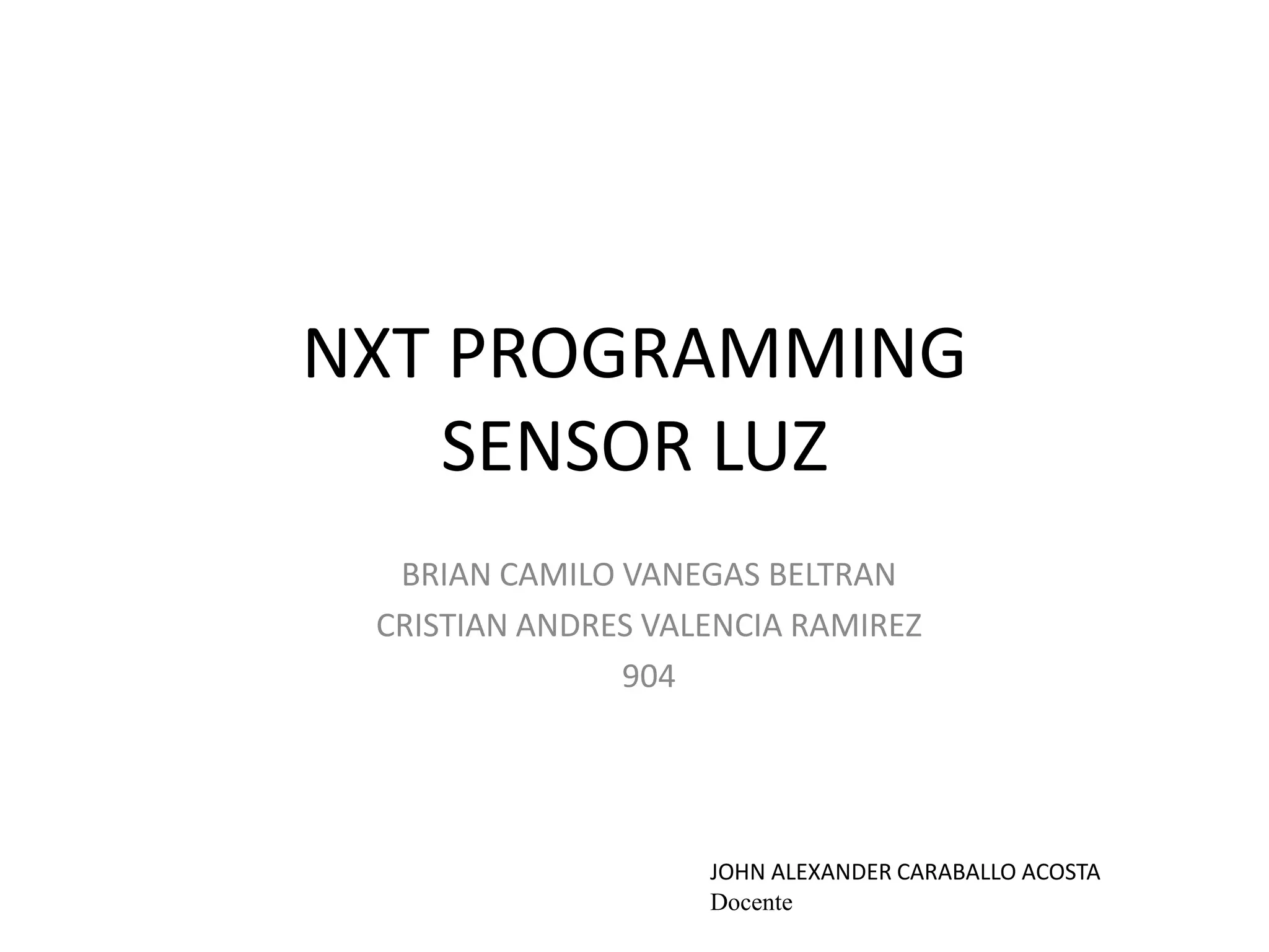 El documento describe cómo programar un sensor de luz en NXT y sugiere agregar el sensor fotosensible a un modelo NXT para programar su comportamiento para que cambie cuando se active el sensor de luz. También menciona que el Robot Educador incluye la posibilidad de programar ideas utilizando el sensor fotosensible.