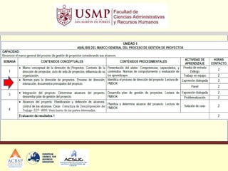 El documento describe los cinco grupos de procesos de dirección de proyectos según la Guía del PMBOK®: Iniciación, Planificación, Ejecución, Seguimiento y Control, y Cierre. Explica que cada grupo incluye procesos relacionados por entradas y salidas, con el objetivo de iniciar, planificar, ejecutar, supervisar y cerrar un proyecto de manera efectiva. También define conceptos clave como procesos, áreas de conocimiento y dirección de proyectos.