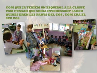 Este documento resume el proyecto sobre ardillas que realizaron los estudiantes durante dos semanas. Los niños aprendieron sobre las partes del cuerpo de las ardillas y crearon un mural. Las familias colaboraron trayendo libros, peluches, nueces y piñas. Los estudiantes descubrieron que hay tres tipos de ardillas y construyeron su bosque en el aula con hojas y palos. Hicieron nidos con plastilina y nueces para alimentar a las ardillas. Aprendieron mucho sobre la vida de estas ardillas.