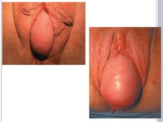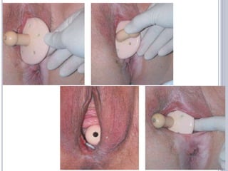 Este documento describe los trastornos de la estatica pelvica y el prolapso de organos pelvicos. Explica la epidemiologia, factores de riesgo, descripcion visual, cuantificacion y tratamiento del prolapso pelvico. El prolapso ocurre cuando los organos pelvicos se desplazan de su posicion normal, causando abultamiento vaginal. Se cuantifica utilizando el sistema POP-Q e incluye opciones de tratamiento quirurgico reconstructivo y oclusivo.