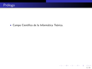 Este prólogo presenta la carrera de Ingeniería en Sistemas y describe la importancia del estudio de los Lenguajes Formales y Teoría de Autómatas (LFTA). LFTA es un campo científico clásico y multidisciplinario que sienta las bases para campos como la algoritmia y la computabilidad. Además, el estudio de LFTA permite entender la estructuración de los lenguajes de programación y es útil para el diseño de lenguajes y compiladores.