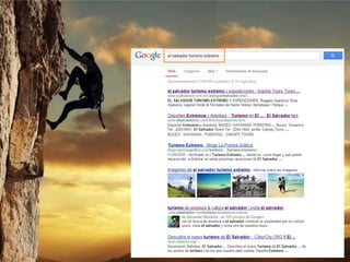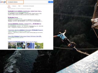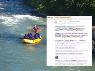 Este documento resume varios sitios web que ofrecen información turística sobre El Salvador, incluyendo detalles sobre alojamiento, tours, deportes extremos como rafting, canopy tours y kayak, y destinos naturales y culturales populares. Los sitios web proporcionan guías, mapas, reseñas de hoteles y restaurantes, y noticias para ayudar a los visitantes a planificar y disfrutar de sus viajes a El Salvador.