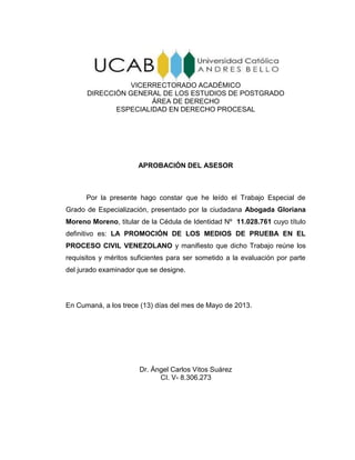 Este trabajo de investigación analiza la promoción de medios de prueba en el proceso civil venezolano, destacando el desajuste entre las formalidades legales y la práctica del foro jurídico, lo que puede llevar a indefensión. Se concluye que la correcta promoción de las pruebas es esencial para garantizar el derecho constitucional de defensa y la justicia, proponiendo una educación sobre el tema para mejorar la situación actual. La investigación, estructurada en cuatro capítulos, aborda factores como el contenido del derecho a la prueba, la noción de formalidad esencial de los actos procesales, y la importancia de la prueba en el ámbito jurídico.