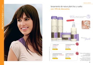 El documento promociona varios productos de belleza y cuidado personal de la marca Natura con descuentos del 15-30%. Se anuncian shampoos, acondicionadores, cremas, jabones, desodorantes, fragancias, maquillaje y más con precios rebajados por tiempo limitado.