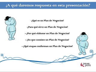Este documento presenta una guía sobre cómo elaborar un plan de negocios exportador. Explica que un plan de negocios es una herramienta que ayuda a las empresas a identificar oportunidades en el mercado internacional y establecer una estrategia para posicionar sus productos en el exterior de manera rentable. Luego, detalla las diferentes secciones que debe contener un plan de negocios de exportación, como el resumen ejecutivo, análisis del mercado objetivo, plan de marketing, plan de operaciones y gestión de exportaciones. El documento proporcion