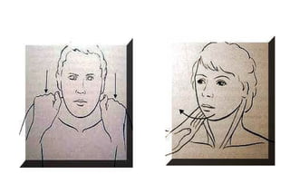 Este documento proporciona información sobre la inspección, palpación y auscultación del abdomen. Describe los pasos para examinar el abdomen, incluyendo observar la piel, forma, contorno y movimientos. Explica cómo palpar la pared abdominal, órganos internos, puntos de dolor y realizar maniobras como la compresión abdominal. También cubre la percusión y auscultación abdominal para evaluar órganos y contenidos.