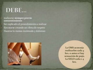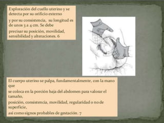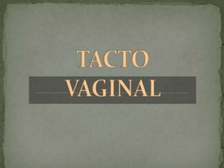 El tacto vaginal permite explorar las condiciones del cuello uterino, la presentación y estación fetal, y determinar el grado de borramiento y dilatación cervical. El borramiento y la dilatación son indicadores importantes del progreso del trabajo de parto, dividiéndose este en fases latente y activa.