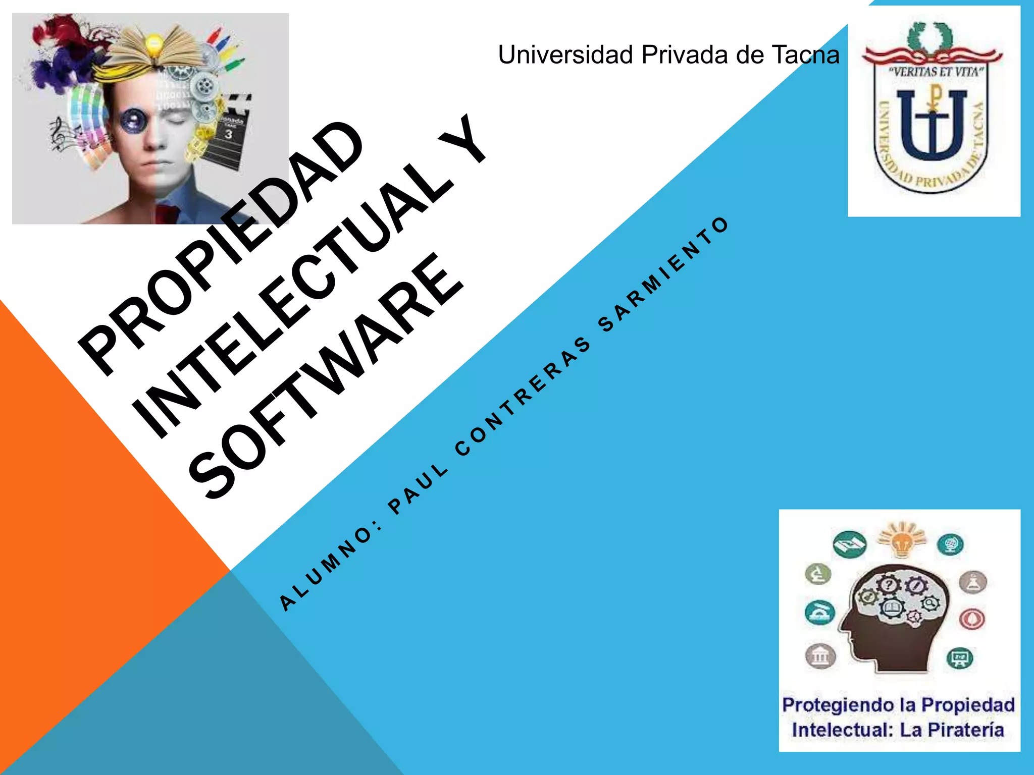 La propiedad intelectual regula las creaciones del ingenio humano como los programas de computación (software). El documento describe cómo se protege legalmente el software en Estados Unidos, Argentina, Colombia y Perú a través de los derechos de autor u otras leyes. Finalmente, se discute la necesidad de una regulación conjunta del software a nivel de la Comunidad Andina para lograr una protección coherente en la región.