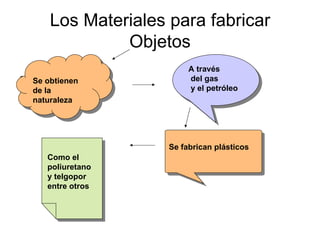 Este documento presenta un plan de clase para la materia de Proyecto Tecnológico II. La clase se centrará en los materiales plásticos, cómo se obtienen de recursos naturales como el gas y el petróleo, y sus propiedades de ser moldeables, resistentes y en ocasiones transparentes e incoloros. Los estudiantes aprenderán que los plásticos como el poliuretano y el telgopor se fabrican y se usan para hacer diferentes objetos.