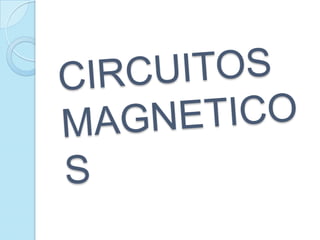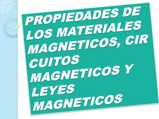 Este documento trata sobre las propiedades de los materiales magnéticos, circuitos magnéticos y leyes magnéticas. Explica que cuando un electrón gira alrededor del núcleo genera un momento magnético y que los circuitos magnéticos confinan el flujo magnético dentro de un núcleo ferromagnético. También describe que Gilbert demostró la existencia de fuerzas atractivas y repulsivas entre polos magnéticos.