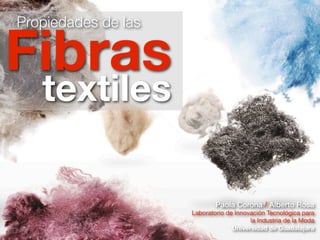 El documento analiza las propiedades de las fibras textiles, incluyendo su estructura, diámetro y cómo estas características afectan el tacto, textura y funcionalidad de las telas. Se discuten las diferencias entre fibras naturales y artificiales, sus métodos de medición y factores que determinan la calidad. También se mencionan técnicas y pruebas para identificar distintas fibras a través de observación visual y pruebas químicas.