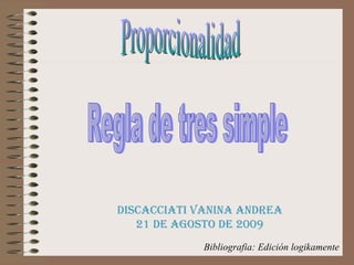 El documento explica los conceptos de proporcionalidad directa e inversa y la regla de tres simple. Define que una proporción existe cuando se igualan dos razones y describe que las magnitudes son directamente proporcionales cuando una aumenta al aumentar la otra y inversamente proporcionales cuando una aumenta al disminuir la otra. Además, detalla cómo usar la regla de tres simple para resolver problemas de proporcionalidad directa e inversa.