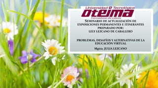 Este documento presenta una propuesta para diseñar un seminario virtual sobre exposiciones permanentes e itinerantes en museos. El seminario busca capacitar al personal de museos en la provincia de Chiriquí sobre temas relacionados a la organización y preservación de exhibiciones. El documento justifica la investigación debido a la falta de capacitación en los museos provinciales. Incluye objetivos, preguntas de investigación y una descripción del método que incluye entrevistas y encuestas para determinar los contenidos y diseñar el seminario