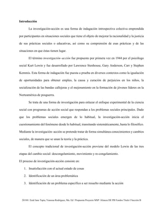 Este documento describe una investigación-acción realizada para evaluar el efecto de utilizar la estrategia de Lapbook para enseñar las formas geográficas terrestres de Puerto Rico a estudiantes de cuarto grado. La investigación comparó el aprendizaje de estudiantes a los que se les enseñó el tema utilizando Lapbooks contra estudiantes que recibieron enseñanza tradicional. Los resultados sugirieron que el uso de Lapbooks mejoró significativamente el aprendizaje de los estudiantes sobre las formas geográficas de Puerto