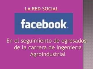 El documento propone el uso de redes sociales como Facebook para establecer una comunicación permanente entre los egresados de Ingeniería Agroindustrial y su escuela. Esto permitirá dar seguimiento a los egresados, identificar sus necesidades de capacitación, y apoyar la actualización de planes de estudio. El grupo en Facebook sería administrado y moderado por un profesor por dos semestres, para luego evaluar si implementarlo de forma permanente.