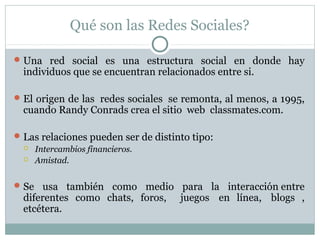 Este documento describe las redes sociales más populares, Facebook y Twitter, y propone una forma en que una escuela podría usar estas plataformas para mejorar la comunicación con los padres y estudiantes. Facebook se utilizaría para compartir fotos de eventos escolares, crear foros de discusión y responder preguntas de padres. Twitter se usaría para compartir artículos, anuncios y transmitir eventos en vivo de la escuela.