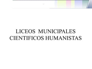 Este documento lista información sobre varios liceos municipales en Antofagasta, incluyendo sus direcciones, números de teléfono y las especialidades educativas que ofrecen como ciencias humanistas, ciencias o educación técnica profesional.