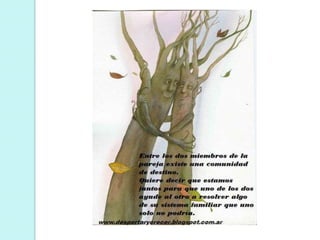 El documento habla sobre prosperar en familia. Explica que la pareja es la que inicia la familia y es importante que ambos cónyuges se apoyen mutuamente para prosperar, evitando complejos machistas. También destaca que para apoyar a los hijos a prosperar, la familia debe mantenerse unida y cultivar amor entre sus miembros.