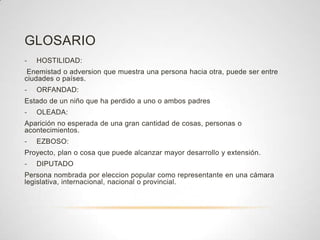 Este documento presenta definiciones de varios términos como hostilidad, orfandad y oleada. Luego resume las biografías de varias figuras históricas importantes como Winston Churchill, Franklin D. Roosevelt, Adolf Hitler y Benito Mussolini, destacando aspectos como sus carreras políticas, roles durante la Segunda Guerra Mundial y causas de muerte. Finalmente, incluye breves biografías de otras figuras clave de ese periodo como Dwight D. Eisenhower, Joseph Goebbels y Isoroku Yamamoto.
